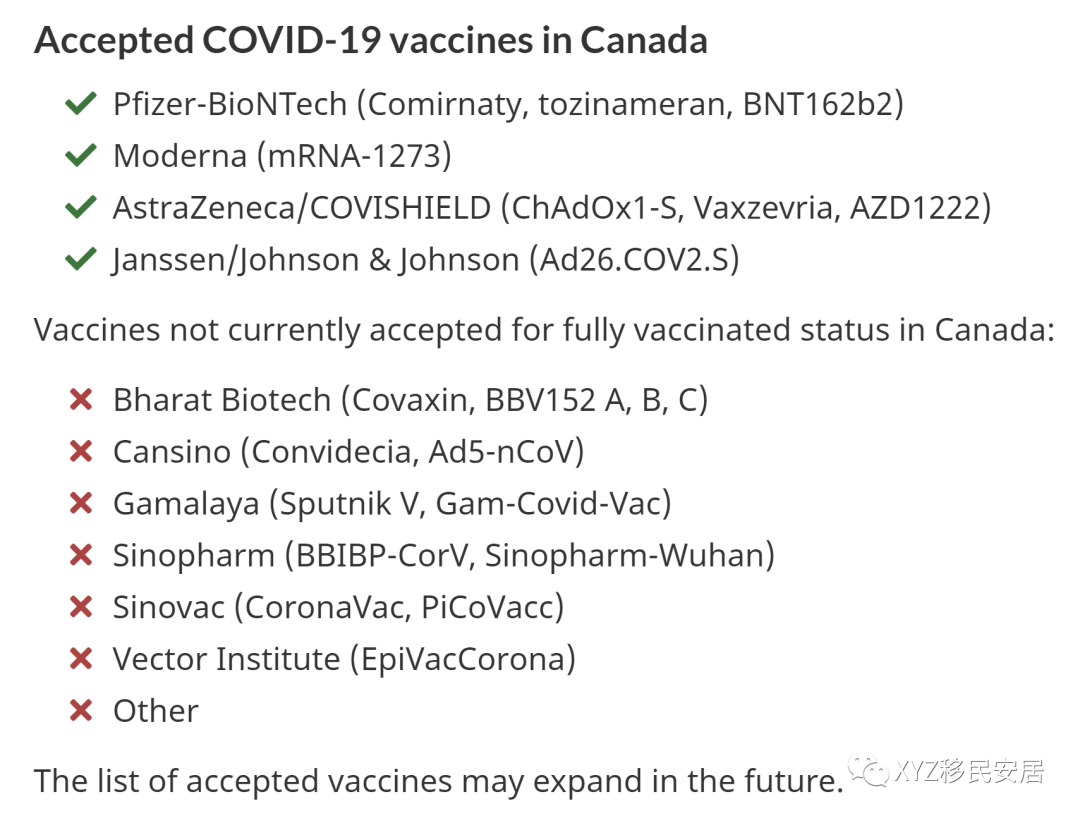- 已经完全接种了加拿大卫生部批准的新冠疫苗(混打也承认)