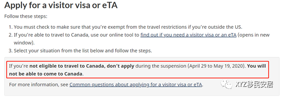 如果您属于受到旅行限制约束的人士,请不要在2020年4月29日至5月19日期间申请加拿大旅游签证。