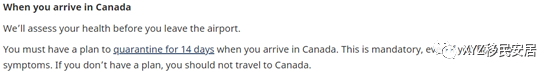 到达加拿大后,机场官员会在您离开机场之前评估您的健康状况。即使没有症状,也必须隔离14天。这是强制性的。到达加拿大时,您必须有隔离计划.