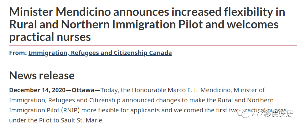 移民部部长Marco EL Mendicino在12月14日最新宣布称,将对北方试点项目的申请人放款申请政策,并欢迎有实践经验的护士。