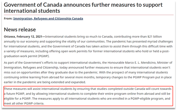 新年王炸系列 | 移民局推迟到今年秋季上网课学生可以全程在网上完成,5月1日不再是分界线! 13 2 月, 2021 适用人群:2020 春季至2021秋季入学的国际留学生,或者已在2020年3月继续读书的国际留学生 计算方式:可以全程上网课,所有网课时间均可以计入未来PGWP毕业工签申请! 这次新政的推出,给加拿大留学生的又一发强心剂!打算留学加拿大的同学们可以抓住机会,尽早准备申请!今年秋季入学现在申请还来得及,欢迎尽快咨询我们~ END Posted in Post-Grad Student