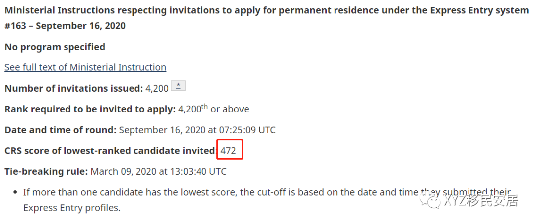 本次邀请的最低分为472分。比上次降低3分,是7月恢复全类别EE的最大降分。