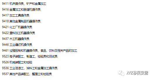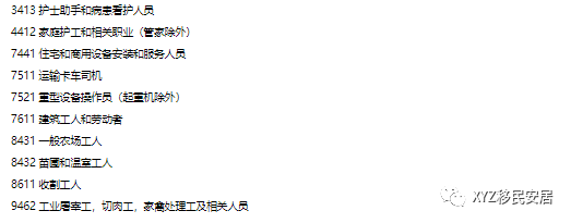 以下工作职位不符合该项移民的要求: