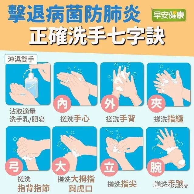 6、洗手。经常用肥皂和水洗手。用厨用纸巾擦乾手,或用个人毛巾擦乾手。如果没有肥皂和水,可用含酒精的手部消毒液。