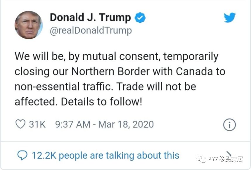 美国总统特朗普发推,确认将关闭美加边境,但保证贸易不受影响!