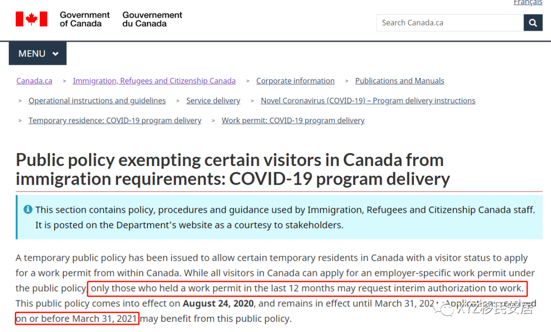 旅游签转工签新政细则 8月24日,加拿大移民局发布一则重磅临时政策,允许持旅游签的访客在加拿大境内申请工签。但只有那些在递交申请前12个月持有工签的人才有资格申请临时工作授权。该政策2020年8月24日生效,截至到2021年3月31日。