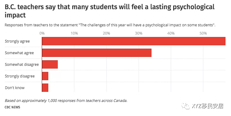 BC省将近四分之三的调查表受访者都认为,疫情下都教育模式会导致有些学生的学习进度大大落后。