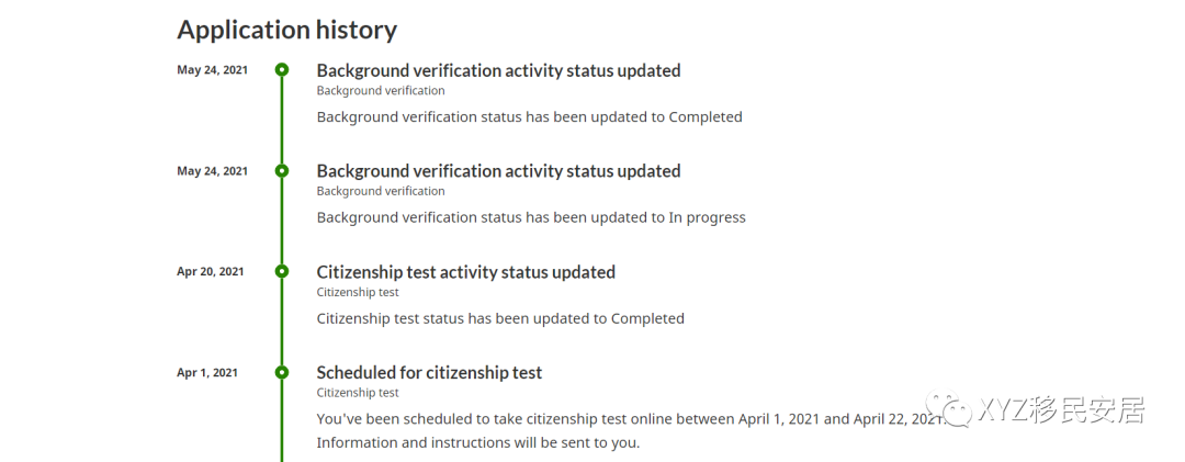 - a timeline of your citizenship grant application history,你公民申请的整个时间线.