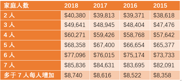* 计算家庭人数时应该包含被担保的父母。举例两夫妻有两个小孩,担保父母,需按6个人的最低收入计算。