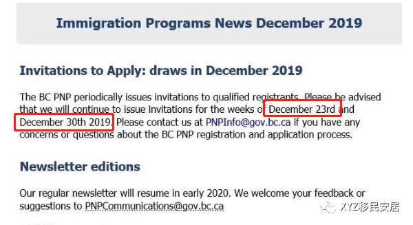 为安申请人的心,BC移民局特发公告说12月23号和30号还会有两次邀请,大家今年还是有机会的~~