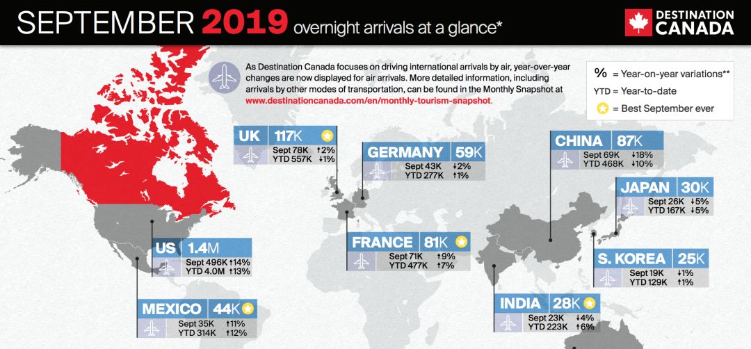 根据其第三季度(7月-9月)数据所示,这是中国自2015年来,首次成为加拿大长途旅客市场的第三位。但今年9月从中国内地来访加拿大的游客,却与去年同月相比足足减少8.4%。
