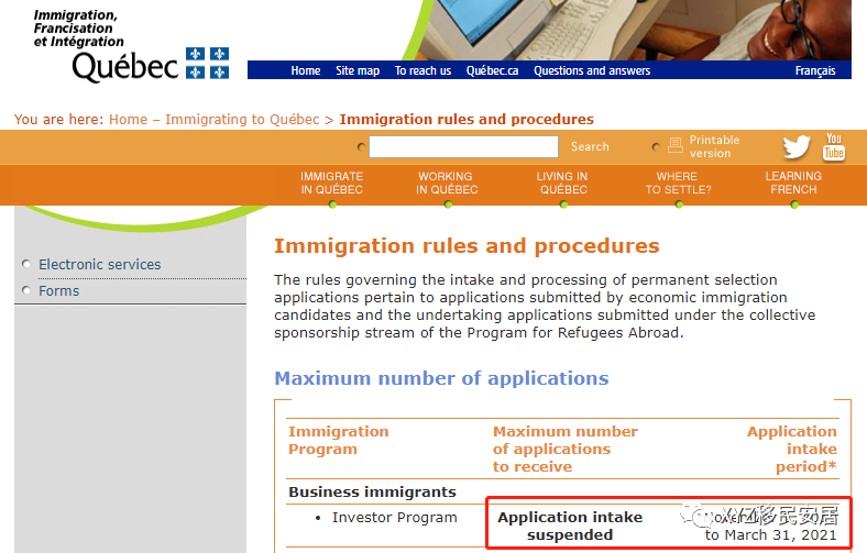 官网链接:http://www.immigration-quebec.gouv.qc.ca/en/informations/rules-procedures.html