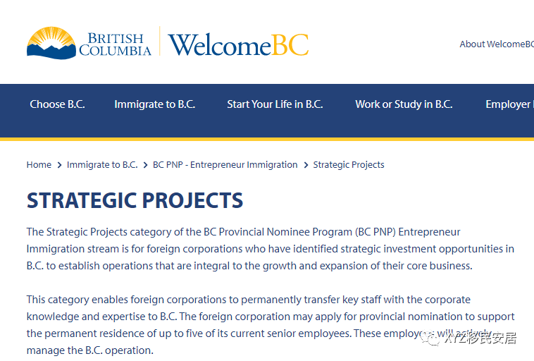 战略项目(Strategic Project)属于BC PNP企业家移民项目下的一个子类,因为符合省政府要求的企业及投资项目比较少,因此这个项目不广为人知。