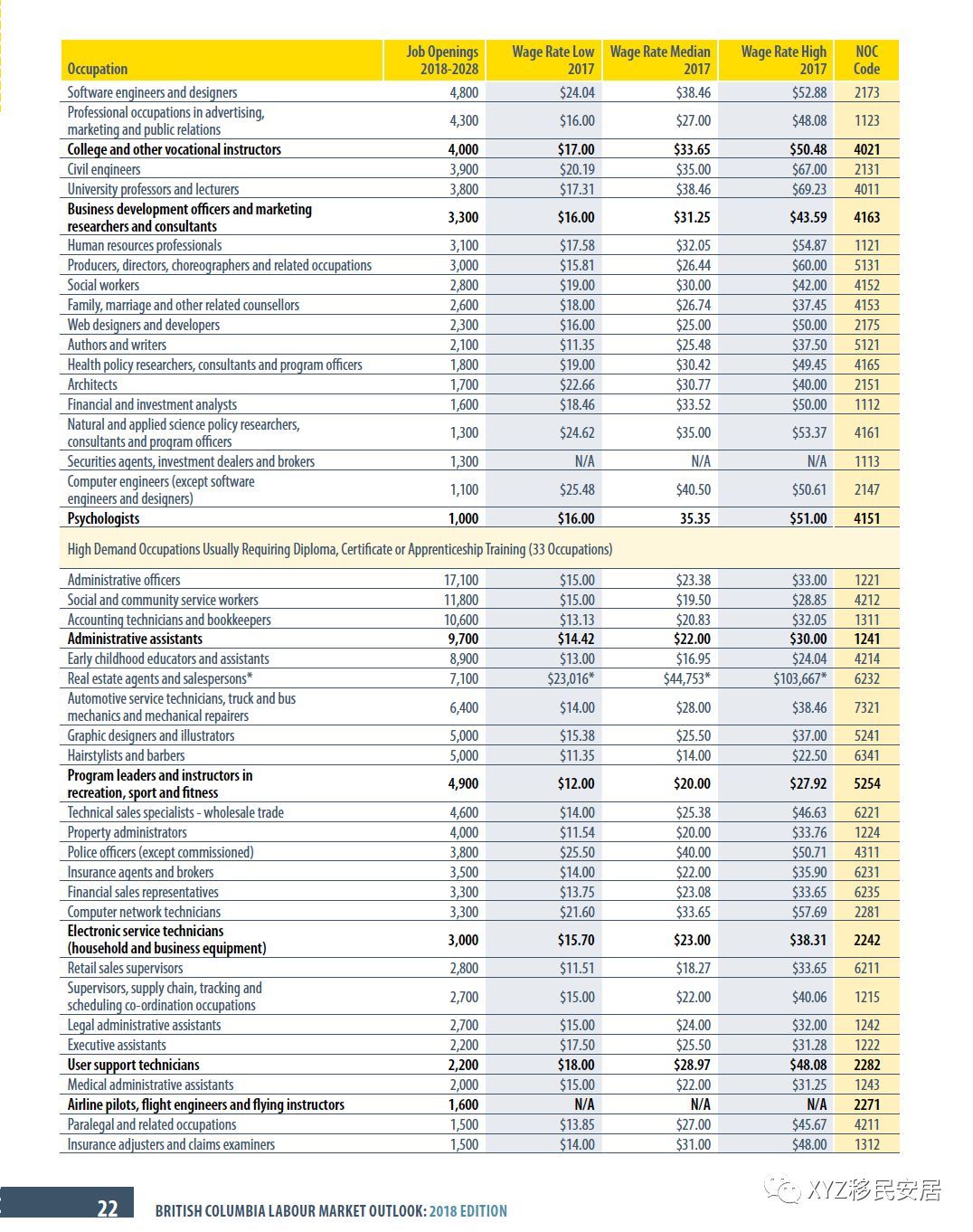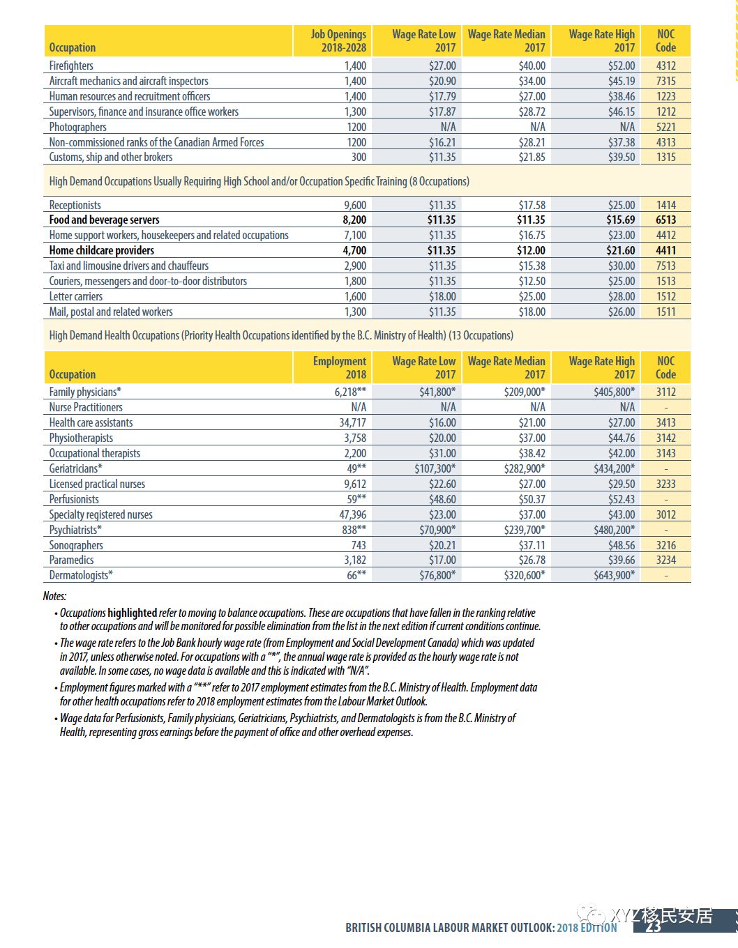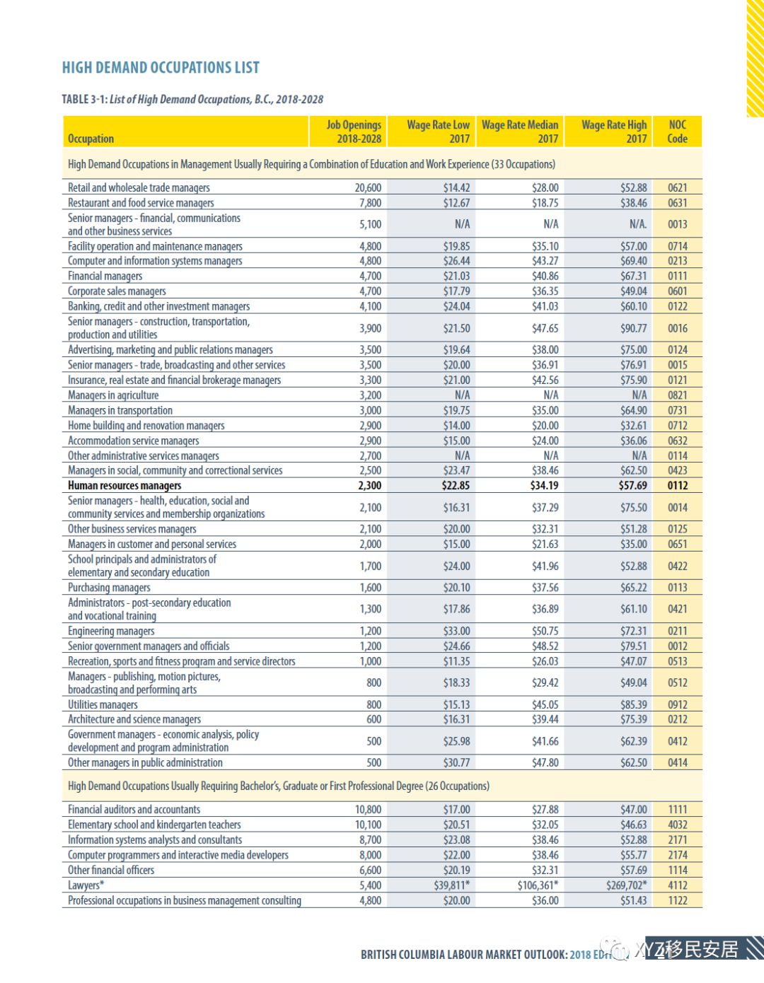 2018年11月7号,加拿大BC省省提名的网站公布了一份对移民影响重大的文件:BC Labour Market Outlook: 2008 Edition。这份文件厚达104页,详细分析了BC省的岗位缺失以及各个区域对不同岗位的需求。并且公布了2018-2028年 High Demand Occupation List,并且在省提名的有关指导性文件中指出,这些急需岗位将会在省提名技术移民的打分表中获得额外10分的分数。